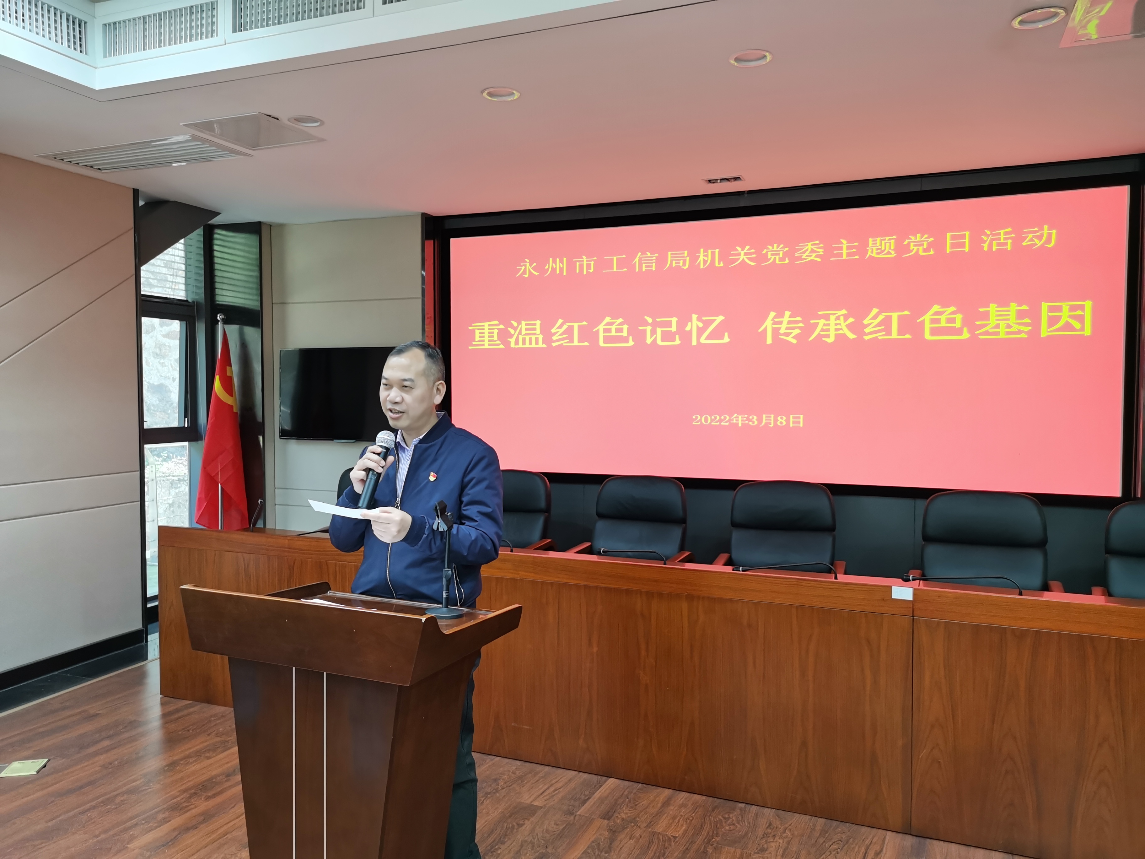 近日,永州市工信局直属机关党委组织各基层党组织党员干部赴双牌水电站开展“传承红色精神”主题党日活动,局党组成员、副局长蒋诚带队参加活动。