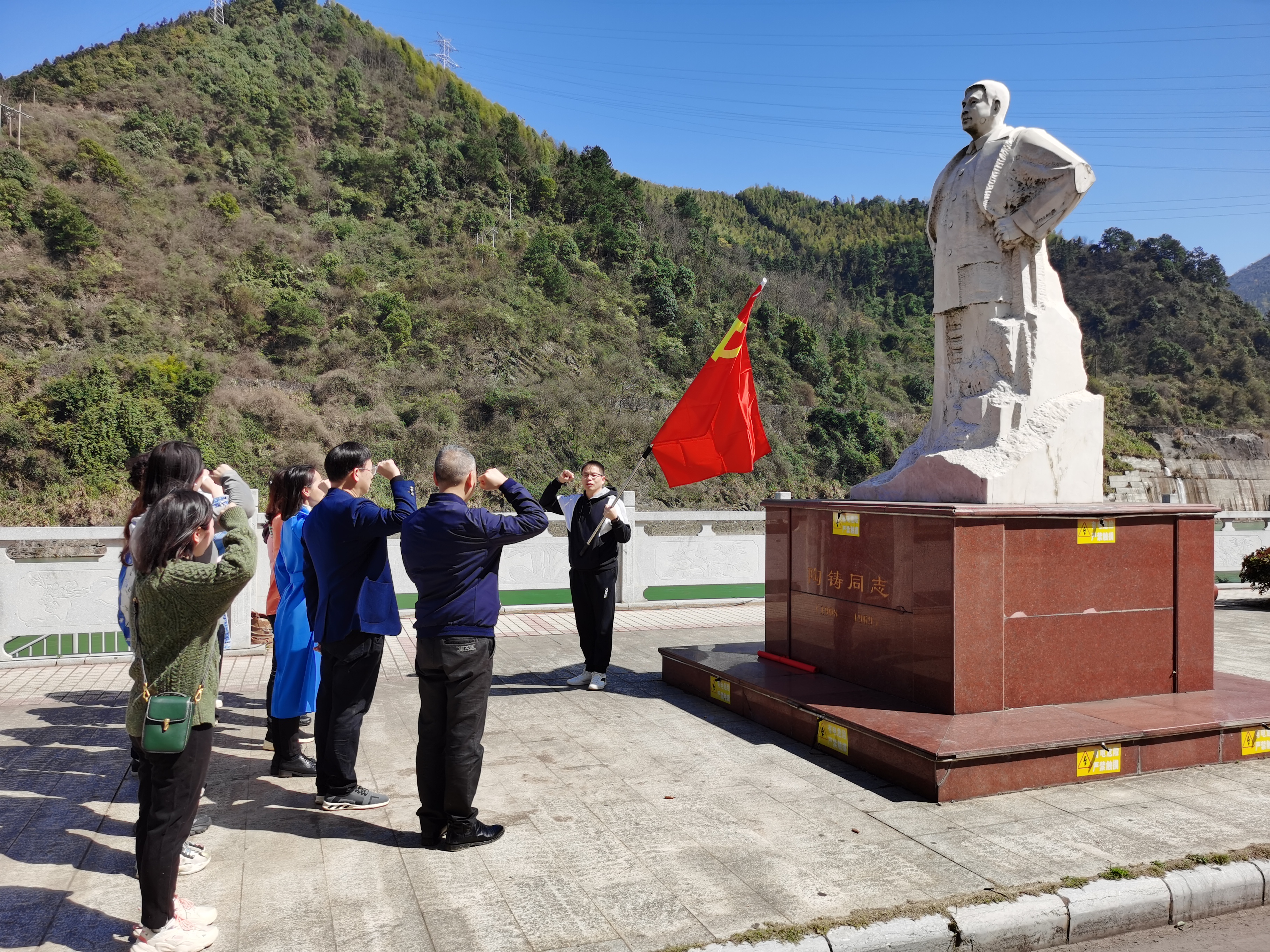 在陶铸同志雕塑前坪,全体党员同志们面向党旗,举起右手重温入党誓词。在参观活动中,参观了双牌水电站大坝、机房等场馆设施。参观期间,据介绍,1958年11月,1万多来自五湖四海的建设者们,带着满腔的热情来到这荒山深谷,风餐露宿,战天斗地。在建设过程中,建设者们创造了许多奇迹,水电部多次对双牌水库指挥部予以嘉奖,并向全国通报表彰;1960年,国务院还把双牌水库指挥部树立为“自力更生、艰苦奋斗、勤俭办事、增产节约”的典范。通过这次参观活动,党员同志们近距离触摸双牌水电站光荣历史,感受建设者们敢为人先、拼搏奉献、实业救国的精神,在感悟党的光荣传统和优良作风中坚定信念、凝聚力量。