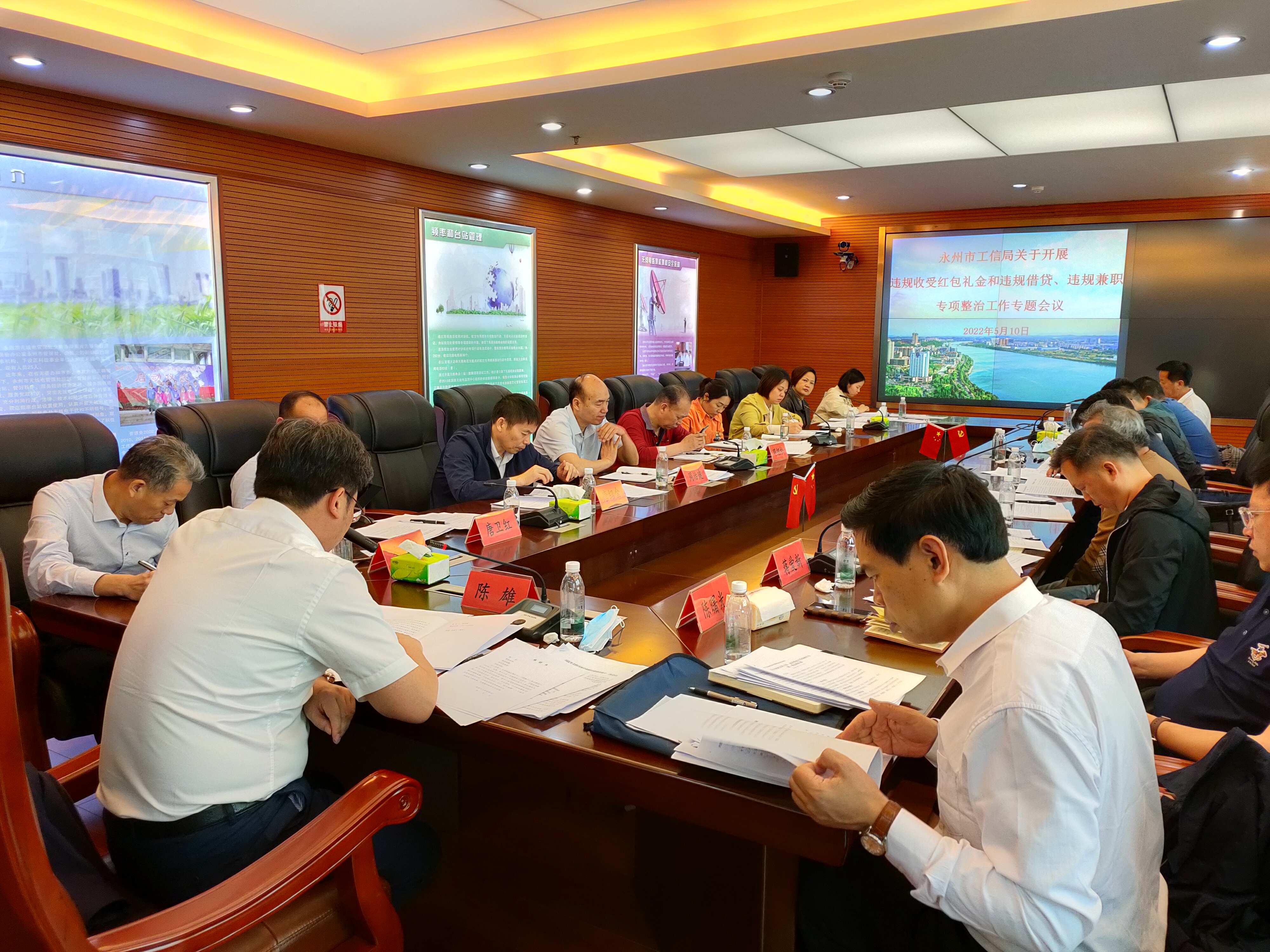 为贯彻落实“镜鉴”以案促改专项活动,进一步净化修复整治生态,深化全面从严治党,坚定不移正风肃纪反腐,5月10日,市工信局召开召开党员干部违规收送红包礼金和违规借贷、兼职专项整治工作专题会议。局党组书记、局长陈雄主持专题会议,局党组成员、科室负责人以上干部及市无线电管理处主任参加会议。