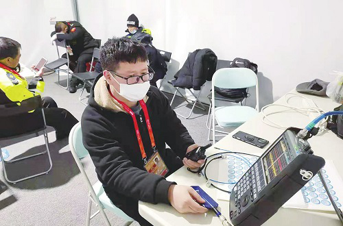 国家无线电监测中心检测中心保障团队的队员郑岳明,在过去的2021年,无论春节还是国庆节,他就像一颗螺丝钉一样,始终坚守在冬奥会赛事无线电保障岗位上。作为一名资深的无线电工程师,他深知无线电安全对北京冬奥会成功举办的重要性,时刻以“严谨务实、全力以赴”的工作标准严格要求自己,全力以赴做好冬奥会保障工作。作为北京延庆人,郑岳明为冬奥会能在自己家乡举办而骄傲,也为自己能够参与冬奥会无线电安全保障工作而自豪。2021年春节假期,测试活动在延庆国家高山滑雪中心和国家雪车雪橇中心举办,考虑到部分用户可能出现因未提前完成设备核验及贴签而无法顺利进入场馆,郑岳明放弃休假,大年初三就入驻现场开展工作。他和团队主动为距离场馆较远的用户着想,冒着严寒上门检测,积极帮助用户解决频率申请、技术检测等问题。在他们的共同努力下,各单位用户都顺利拿到了无线电发射设备的“安全标签”。