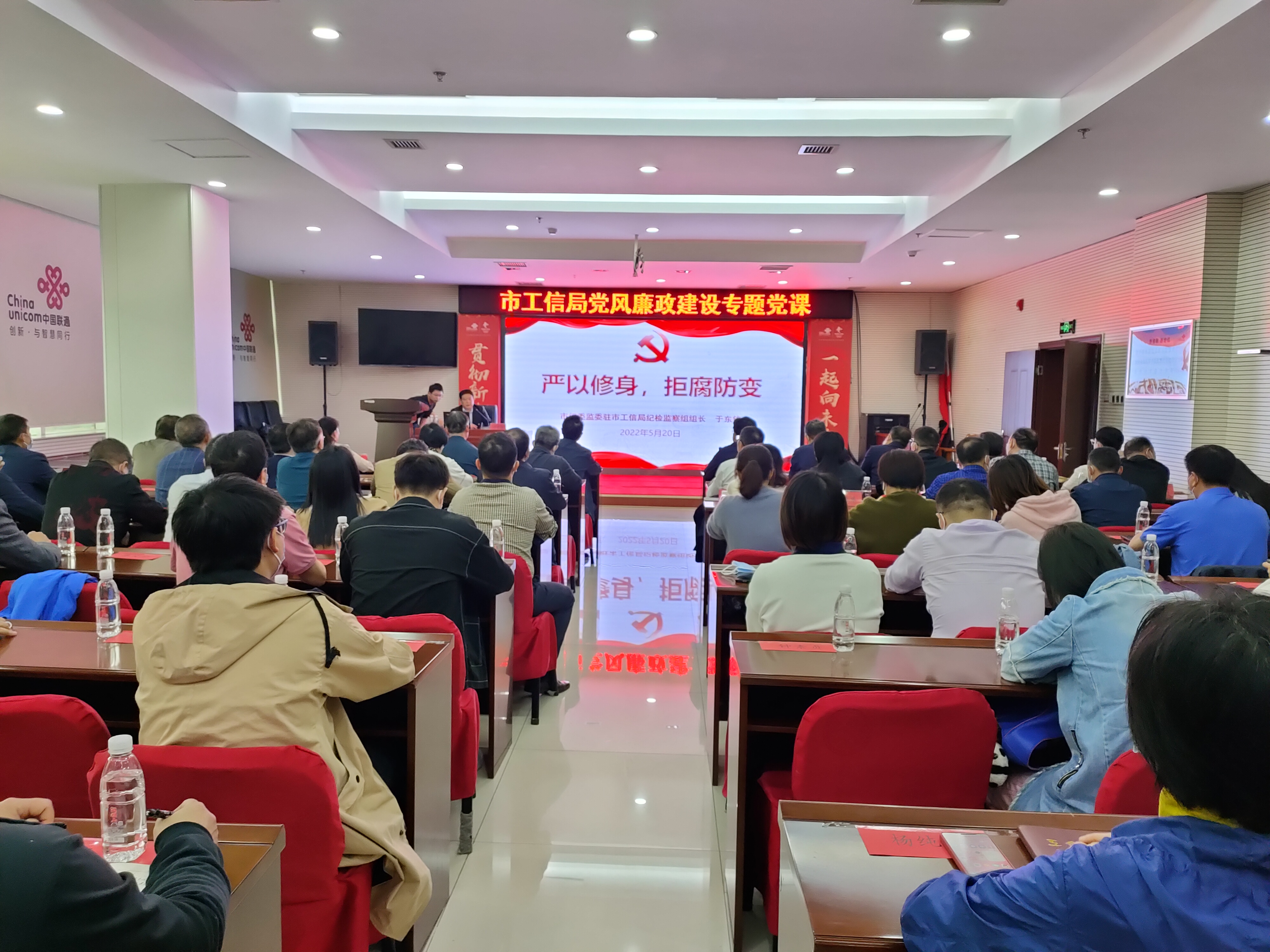 为进一步筑牢党员干部拒腐防变的思想防线,推进党风廉政建设向纵深发展,按照市工信局开展的“党组成员讲党课”活动要求,5月20日,市工信局组织全体党员开展了一堂主题为“严以修身,拒腐防变”的廉政党课。局党组书记、局长陈雄、市工信局全体党员干部及市民营经济发展服务中心和无线电管理处全体党员干部参加党课宣讲。