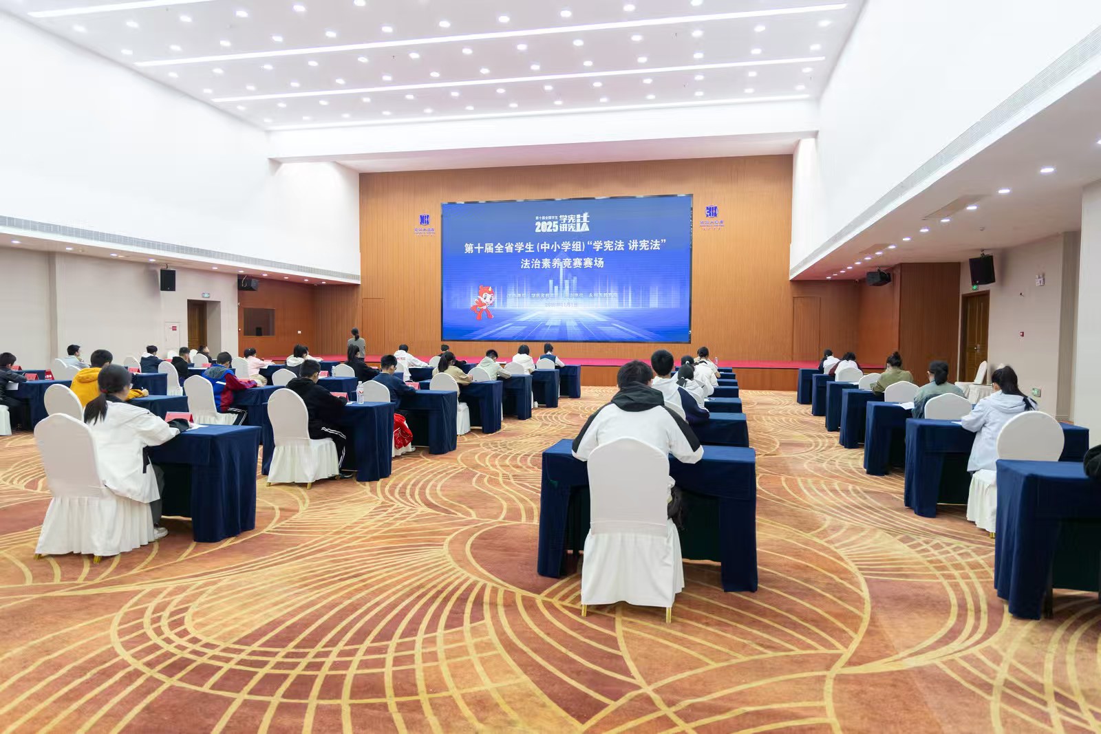 在法治素养竞赛中,选手们沉着冷静、认真答题,围绕宪法、民法典、未成年人保护法等内容进行笔试考试和现场答题两个环节,展现了出色的法律素养和竞技水平。