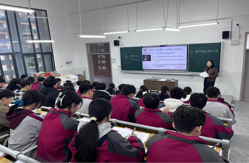 视导过程中,专家团队聚焦教学常规核心环节,通过听课、查档、座谈等形式,全面检视蓝山二中备考工作,并对蓝山区域校际联合教研的创新做法予以重点赞赏。区域校际间的联合教研是“资源共享、难题共解、优势互补”的协作模式,能有效破解了单一学校备考的局限性,并强调要进一步健全这一平台,推动区域备考从“分散用力”向“协同发力”转变。视导组同时结合最新高考动态,针对复习教学中存在的目标聚焦不足等问题,提出深化考点与教材本源衔接、推动复习教学向精准滴灌转变等针对性建议。