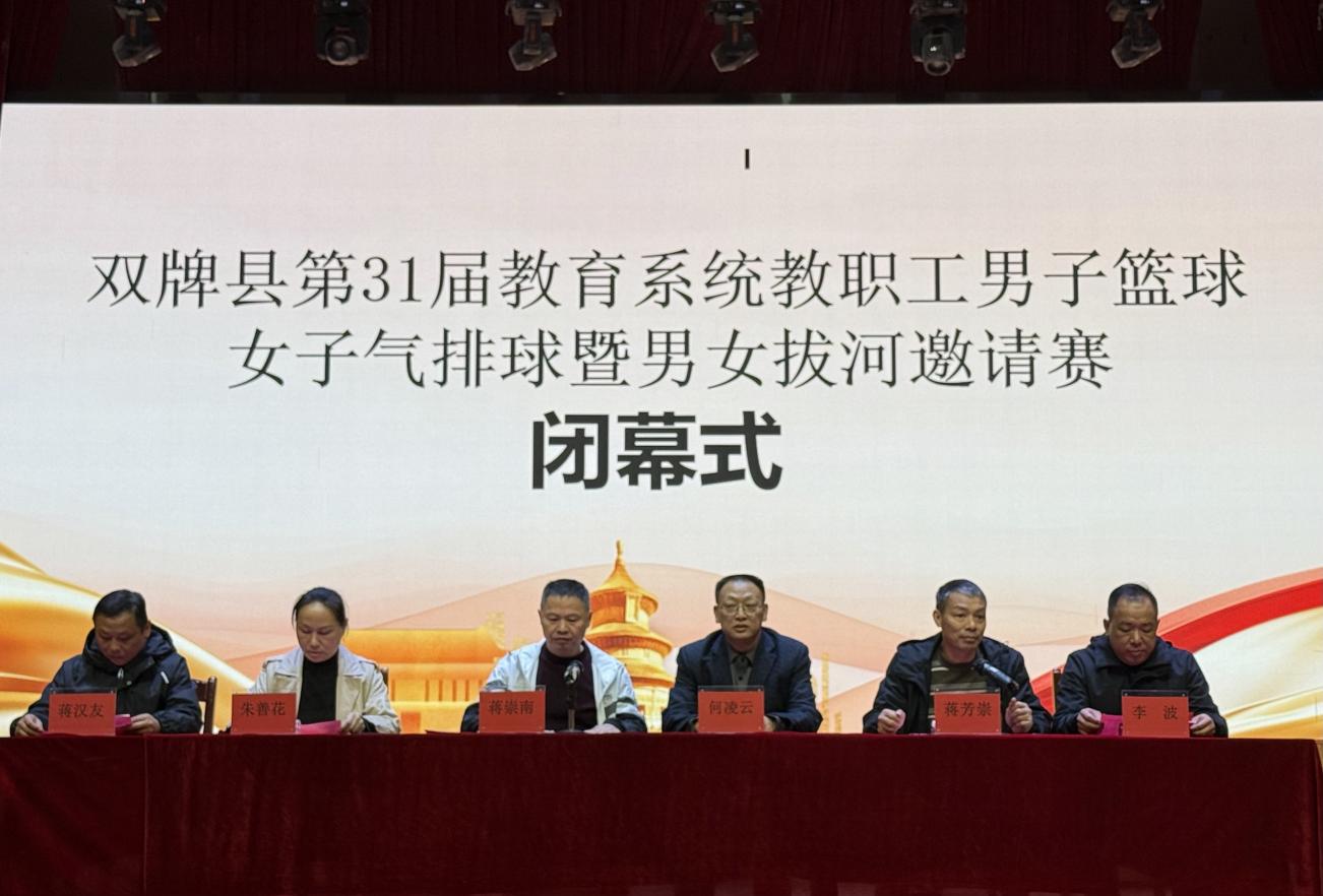 本网讯(通讯员 张静 黄艳萍 蒋琪美)金秋送爽,硕果飘香。10月26日下午,伴随着阵阵欢呼与掌声,2025年双牌县教育系统第三十一届男子篮球、女子气排球暨男女混合拔河邀请赛在双牌县紫京学校正式落下帷幕。为期5天的赛事里,来自全县25所学校的25支代表队、800余名教职工以球为媒、以绳聚力,在赛场上书写了团结与拼搏的动人篇章。