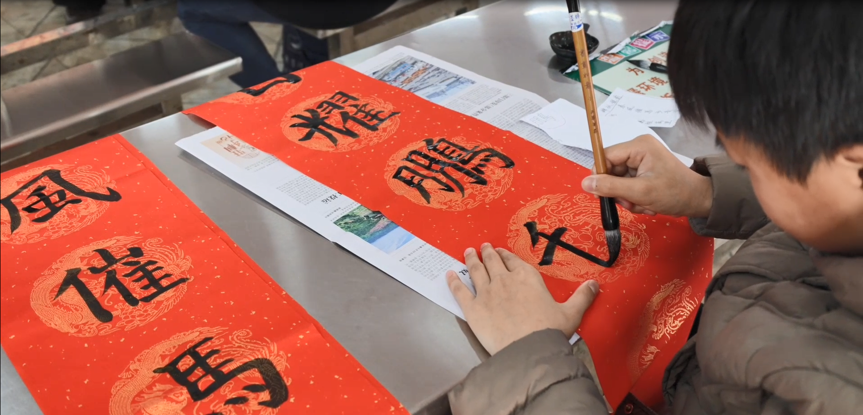 “笔墨迎春·巧手纳福”民俗工坊体验区成为全场互动焦点。学子们挥毫泼墨,在红纸上书写春联福字;指尖翻飞,剪制出寓意吉祥的精美窗花;默契合作,拼装起红彤彤的灯笼与精巧的中国结。红纸映笑颜,墨香绕指尖,传统年俗在亲身体验中变得可触可感,浓浓的年味与文化气息在实践中悄然升腾。