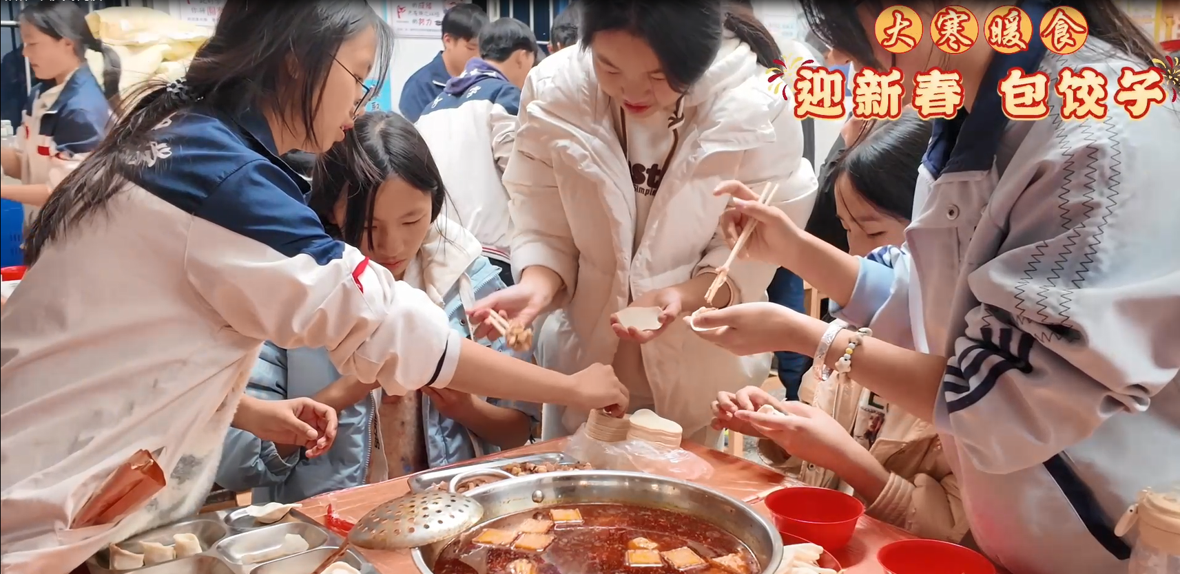 “校园大厨拉小厨”环节别具匠心、暖意融融。九年级学子化身“小小厨神”,现场制作节令美食——饱满圆润的手工饺子、色彩缤纷的水果拼盘、热气腾腾的涮羊肉与暖心火锅,不仅满足了味蕾,更传递了劳动的快乐与分享的温情,彰显了劳动教育与生活美学的深度融合。