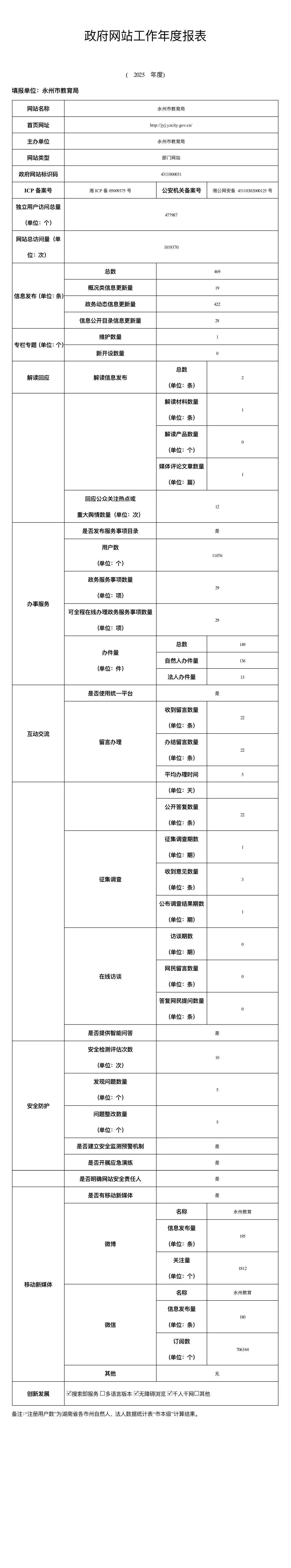 永州市教育局2025年政府网站工作年度报表