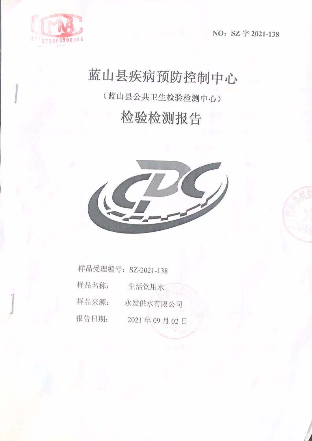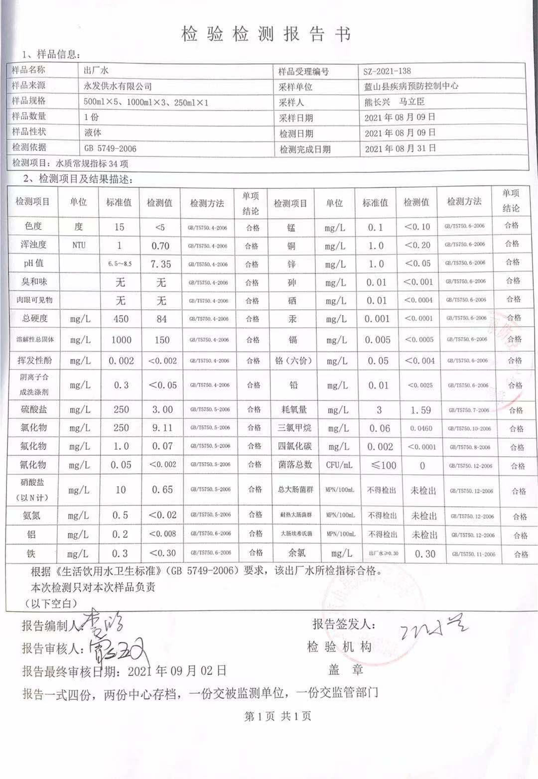 2021年9月份市政管网生活饮用水水质监测结果公示