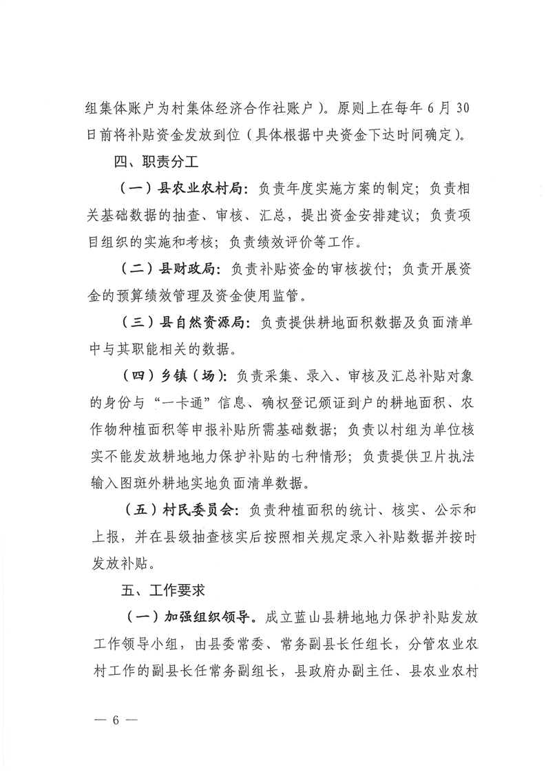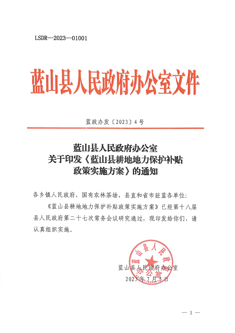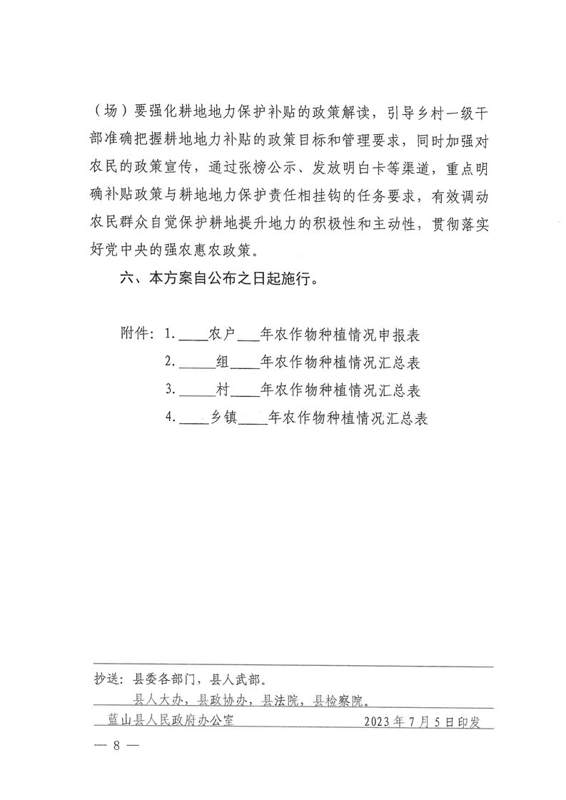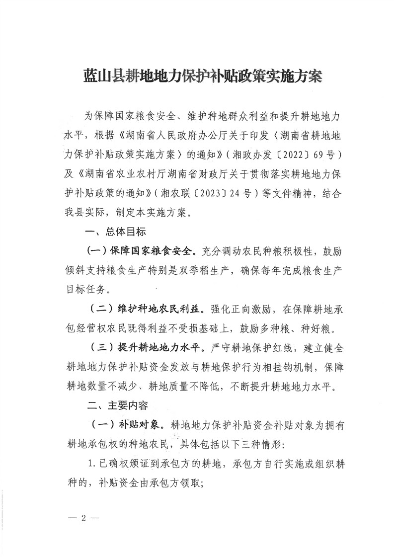 蓝山县人民政府办公室关于印发《蓝山县耕地地力保护补贴政策实施方案》的通知