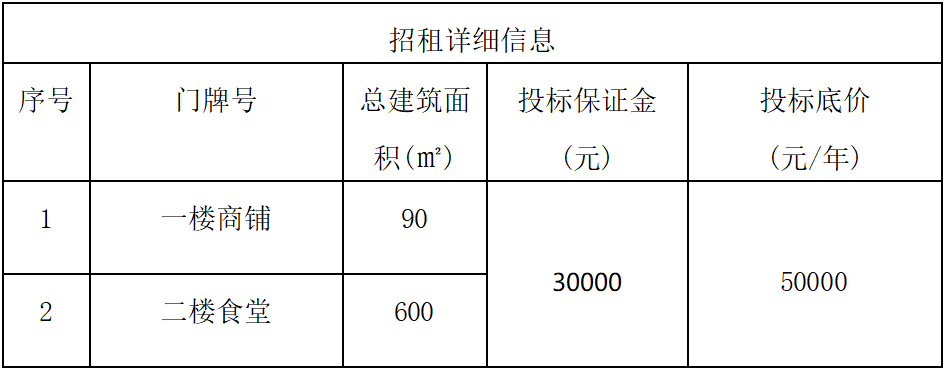 2、中标租户需购入原租户一楼商铺内已有设施设备费用合计43800元,二楼食堂设施设备费用30500元。