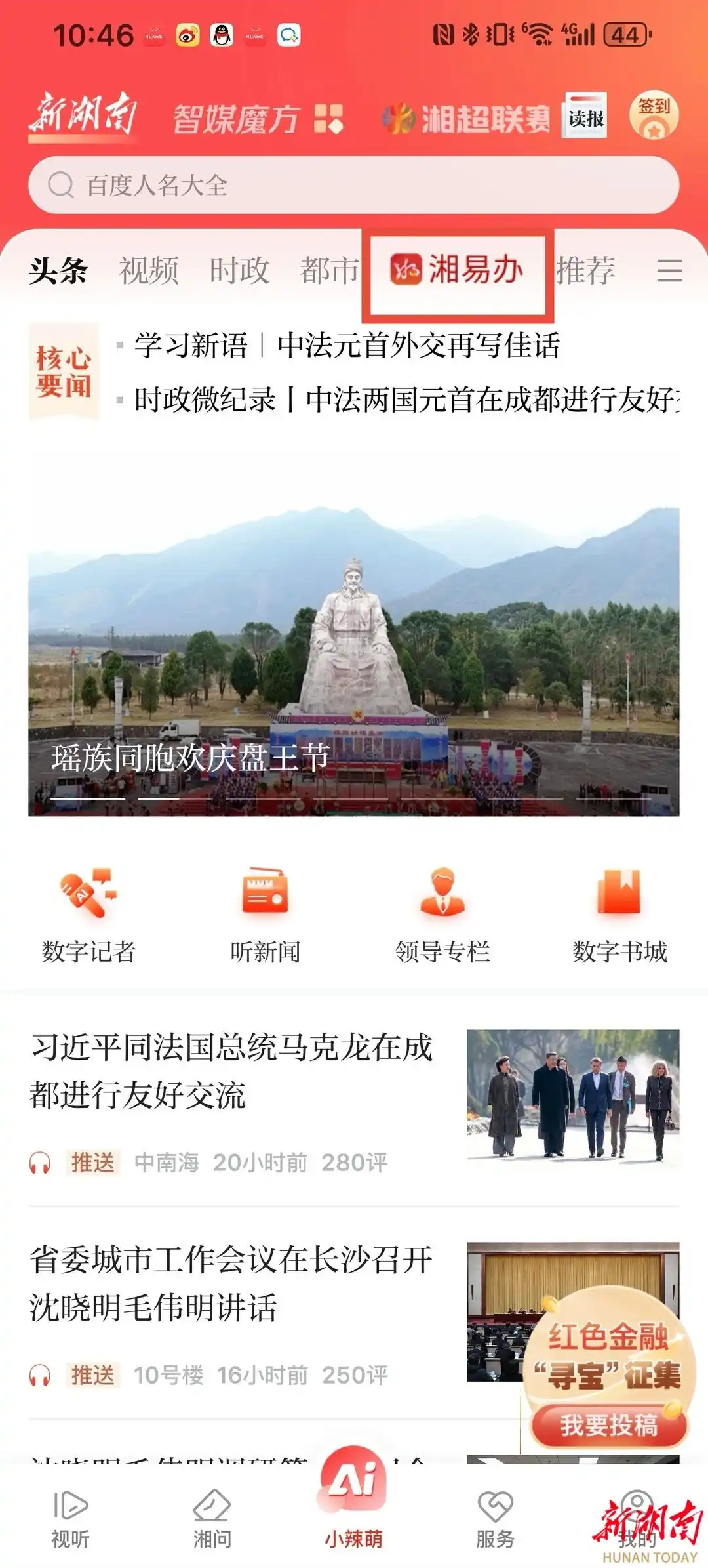 此次合作并非单向输出,而是双向赋能、生态共建。在“湘易办”APP首页金刚区,已同步上线新湖南打造的资讯专区,提供时政要闻、政策图解、直播与短视频等丰富新闻内容,用户在办事等待或查阅政策时,可随时获取权威及时的新闻资讯,让政务服务过程更有温度、网民用户更富获得感。