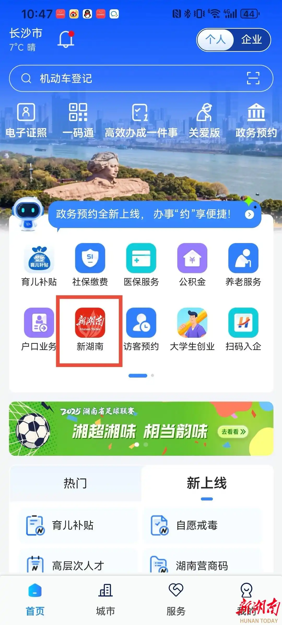 浏览热点新闻时,顺手查查公积金;看完政策解读,接着预约婚姻登记……这样无缝衔接的便捷体验,已成为湖南老百姓指尖上的现实。12月6日,新湖南客户端与全省“掌上办事”总入口“湘易办”超级服务端实现全面互联互通,用户无需在多个APP间来回切换,在一个平台上即可享受“新闻+政务”一站式服务。