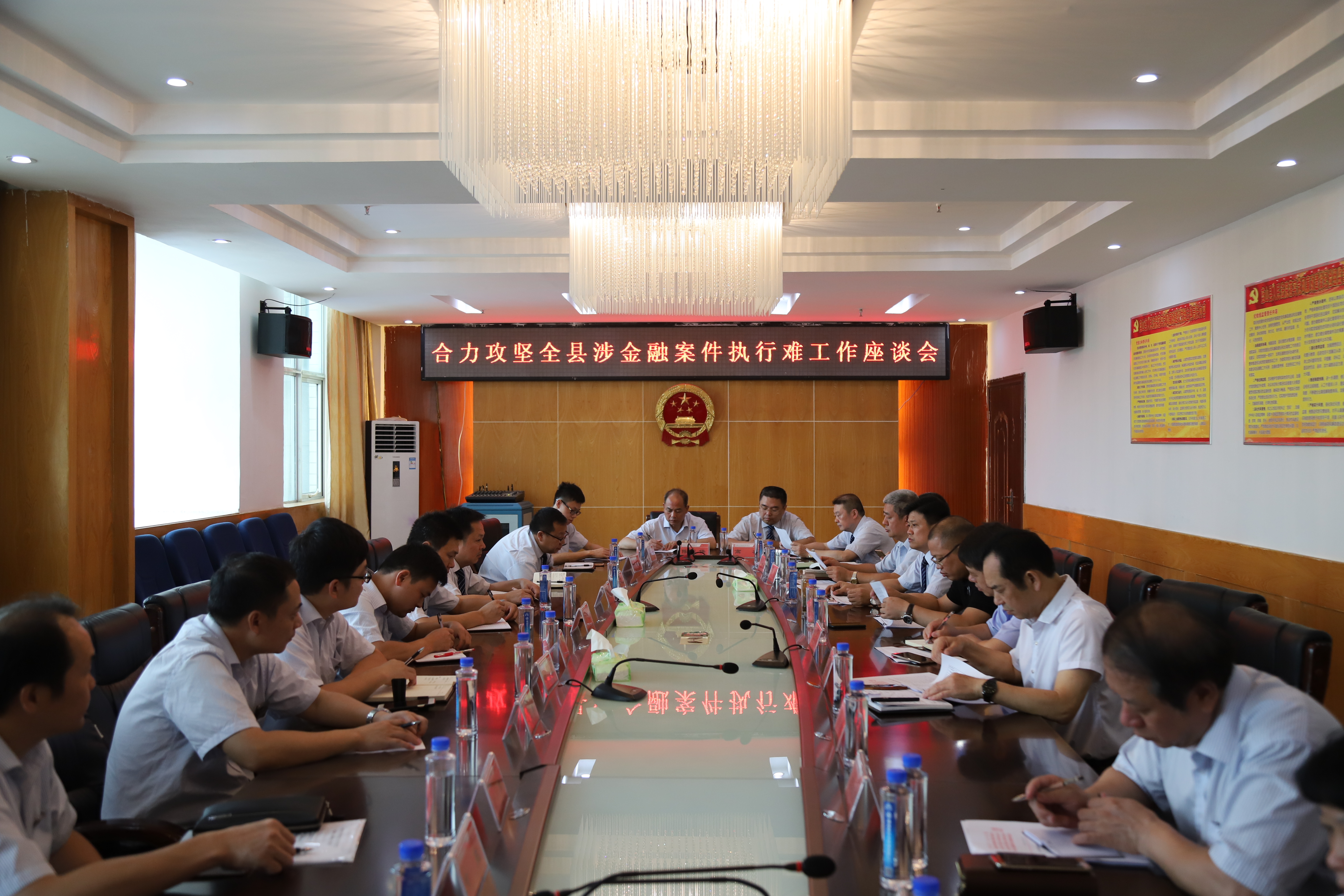 7月5日,县人民法院组织召开合力攻坚全县涉金融案件执行难工作座谈会。县人民法院院长吴昭明、县金融创安办主任、人民银行行长陆远见、县不良贷款清收办主任梁邦清、县农村商业银行班子成员和所属15个支行行长及县法院执行局相关负责同志参加座谈会。