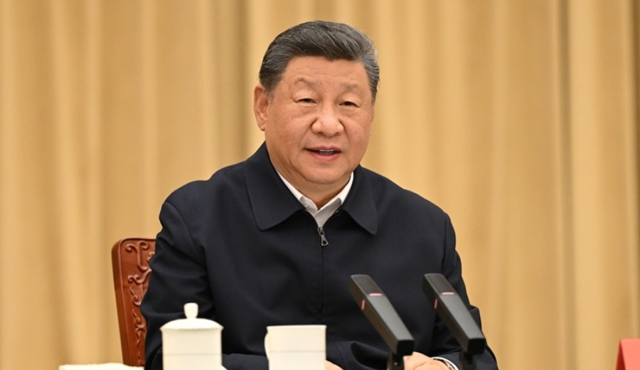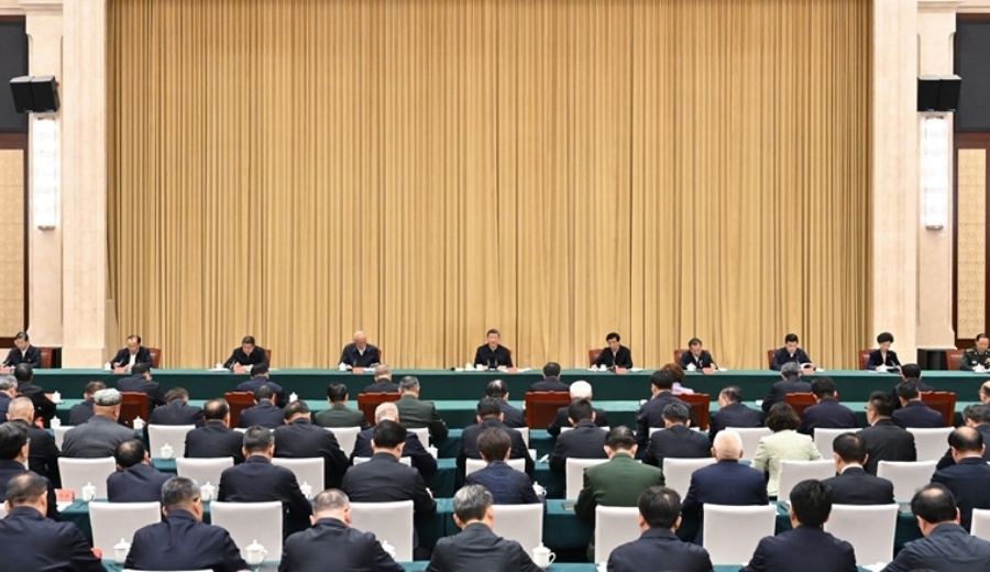 9月24日下午,率中央代表团出席新疆维吾尔自治区成立70周年庆祝活动的中共中央总书记、国家主席、中央军委主席习近平在乌鲁木齐听取新疆维吾尔自治区党委和政府工作汇报,发表了重要讲话。新华社记者 谢环驰 摄