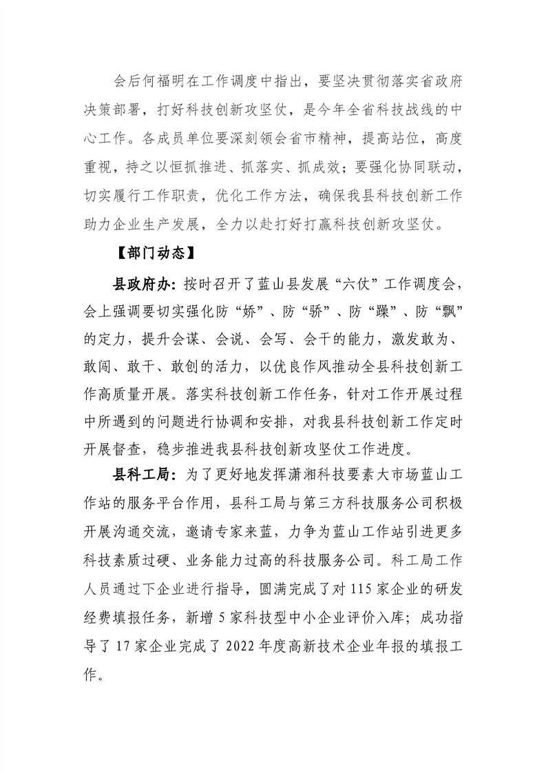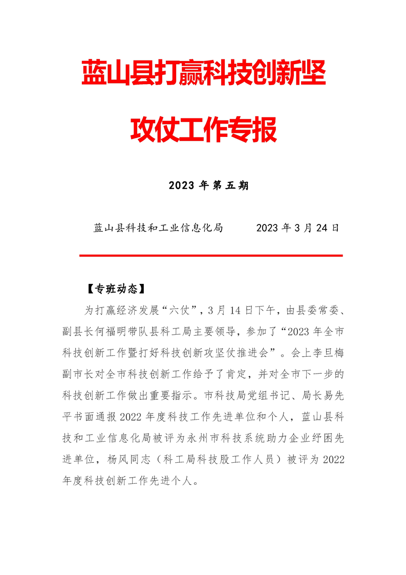 蓝山县打赢科技创新坚仗工作专报(第5期)