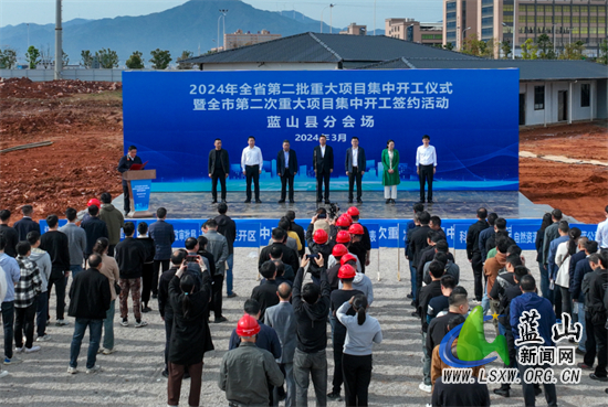 3月29日,在2024年全省第二批重大项目集中开工仪式暨全市第二次重大项目集中开工签约活动中,蓝山县集中开工项目2个,签约项目6个,总投资14.2亿元。县委书记龙向洋出席并宣布项目开工,县委副书记、统战部部长唐伟文出席并致辞,县领导赵忠辉、刘素萍、张国材、周涛参加。