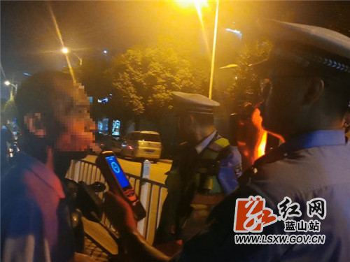 9月13日晚,蓝山县公安局交警大队民警在辖区某路段开展夜查酒驾统一行动,对来往车辆进行酒精呼气测试时,一位老人驾驶车牌号为湘M611**的女式二轮摩托车经过检查卡点时,民警闻到一股明显的酒气,迅速将其进行拦停,要求驾驶员何某某下车接受检测。经过呼气式酒精测试仪检测,检测结果为92mg/100ml,涉嫌醉酒驾车,不仅不能再继续开车,而且还要留滞约束至酒醒。此时,何某某却焦急地告诉民警:“我外孙女在前面的学校上学,晚自习马上要下课了,我本来就是去接她们,如果我现在被带走了,孩子怎么办?”了解情况后,为了不耽误接孩子,民警答应帮何某某去学校接孩子。随后,交警带着老人赶到学校门口,正好赶上孩子放学,民警遂用警车把俩孩子送回了家。送达他们居住的小区后,民警用手机联络上了孩子的家长,把事情跟其家人说明清楚得到了他们的理解和支持。