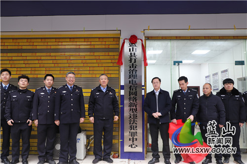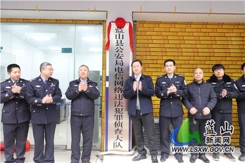 2月18日,蓝山县打击治理电信网络新型违法犯罪中心、蓝山县公安局电信网络违法犯罪侦查大队正式揭牌成立,县委常委、政法委书记黄加葵,副县长、公安局长蒋兴旺参加揭牌仪式。