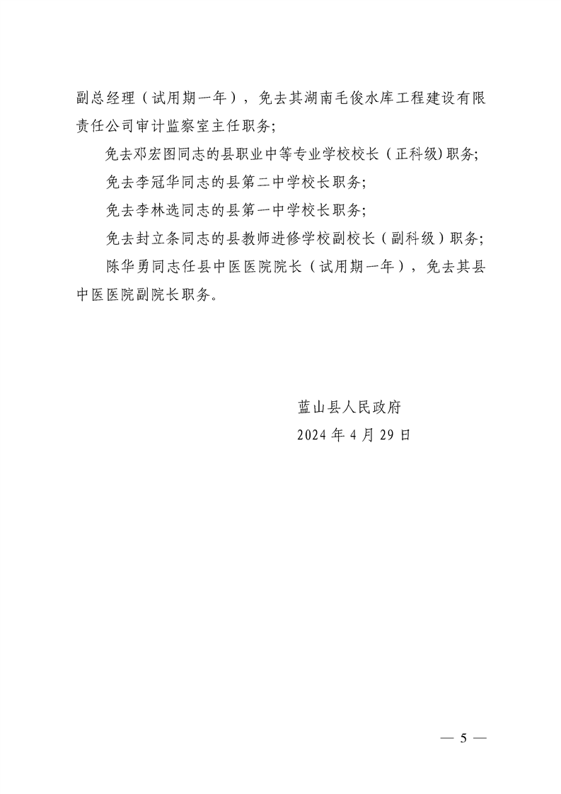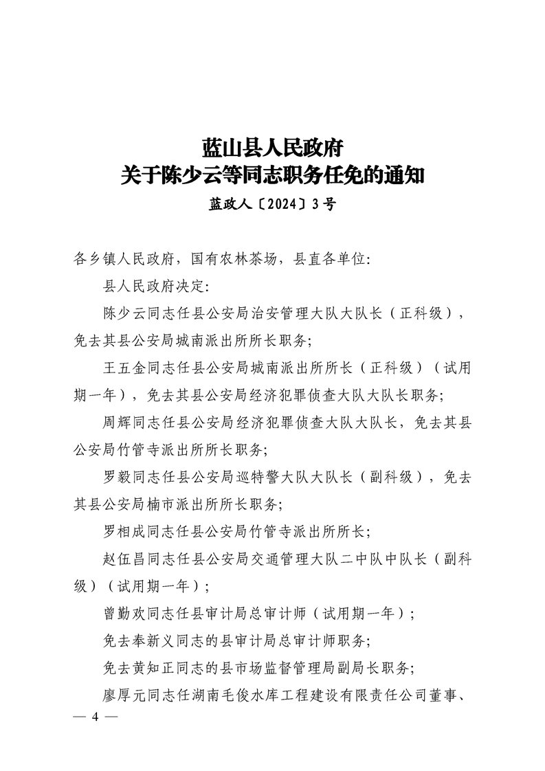 蓝山县人民政府关于陈少云等同志职务任免的通知