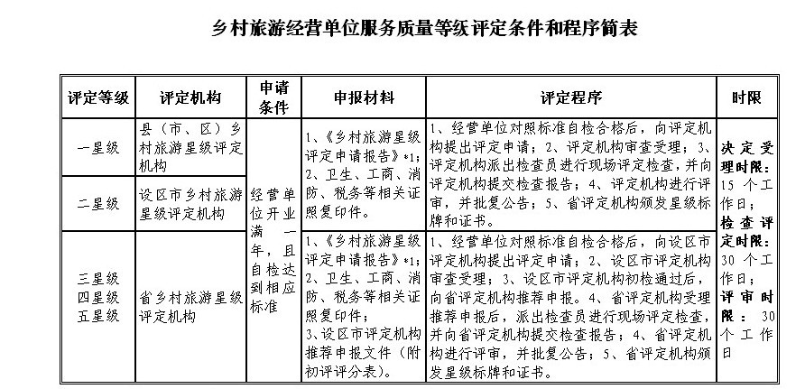 乡村旅游经营单位服务质量等级评定条件和程序简表