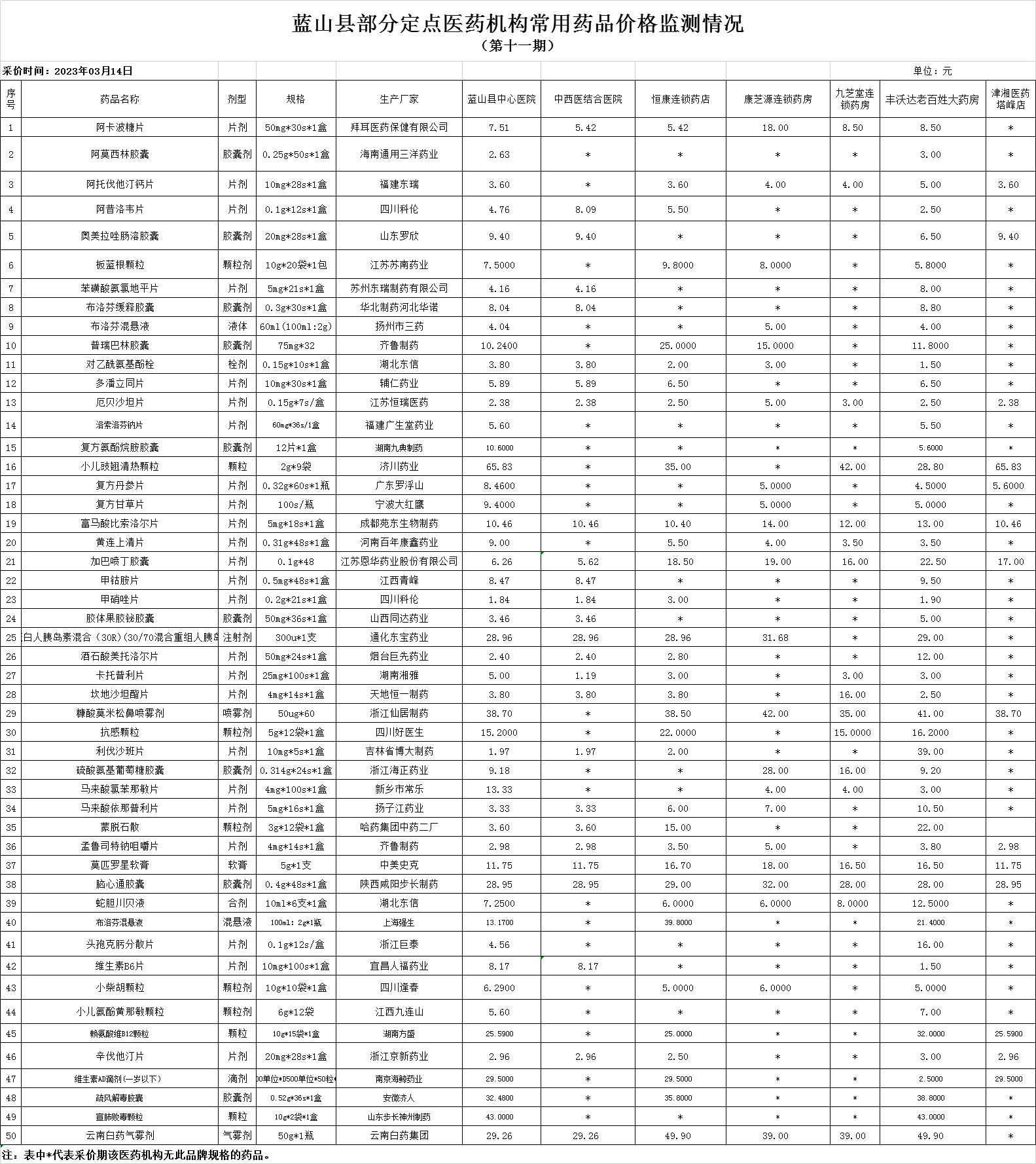 根据《国家医疗保障局关于印发关于做好当前药品价格管理工作的意见的通知》(医保发〔2019〕67号)和《零售药店医疗保障定点管理暂行办法》(医保局令3号)精神,蓝山县医疗保障局出台了《蓝山县医保定点医药机构常规药品价格信息监测与发布制度(试行)》,在全县选取7家经营规模较大、品种较全的定点医药机构做为我县常规药品价格监测、发布的监测单位,监测品种选取市场销售量较大,社会关注度高的50种药品,主要是降血脂、降血压、治疗糖尿病类用药。县医保局将对各监测定点医药机构的零售价格进行定期监测和透明公示,充分发挥“医保”药品价格信息对市场的引导作用,规范药店价格行为,强化社会监督,保障群众对药品价格的知情权、监督权、选择权,促进经营者合理制定药品价格,引导消费者合理选药购药,减轻老百姓用药负担,进一步助推医疗保障高质量发展,打造“惠民医保”。