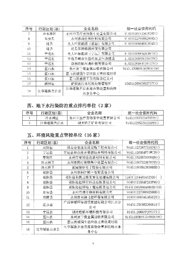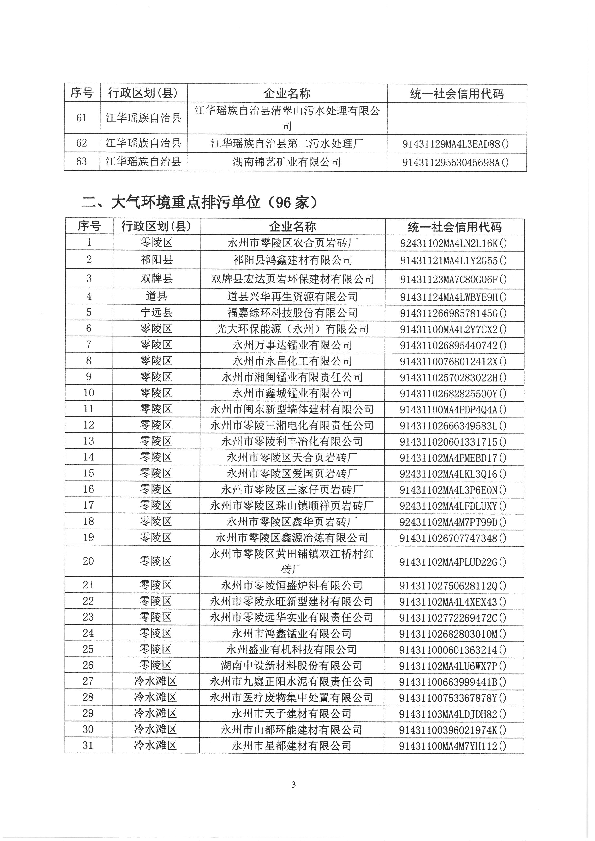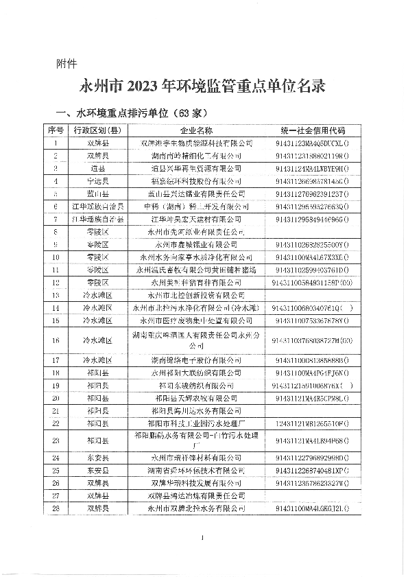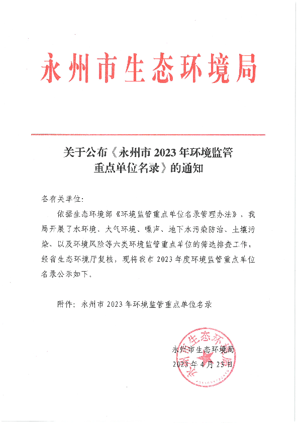 关于公布《永州市2023年环境监管重点单位名录》的通知