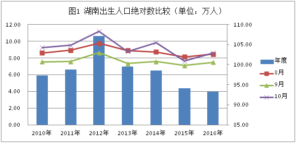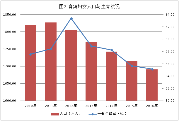(一)出生人口数持续走低。2016年出生人口与上个统计年度相比仍然在下降,从分月的数据分析看,2016年下半年开始出生人数同比出现上升,政策效应略有显现,但回升趋势的持续时间有待进一步观察(见图1)。