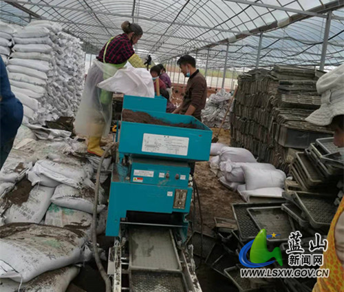 蓝山县新闻网3月28日讯(通讯员 宁志球 彭娜)春分时节,农事繁忙。近日,蓝山县舜蓝农业科技开发有限公司的水稻集中育秧大棚里,智能化育秧机械设备在工人师傅们熟练操作下奏起欢快的乐章,宽敞的大棚里呈现出一派繁忙的景象。“集中育秧中心建成投产后,育秧不再靠天帮忙了!”正在现场指挥调度的公司负责人陈昌军自豪地向笔者介绍。公司所属的牛角农机专业合作社投资200余万元、占地8000多平方米的水稻集中育秧中心刚投入生产,单批供苗可以达到1000亩以上,服务大田能力在2000亩以上。“机育秧可减少种子用量30%左右,缩短成熟期5-8天,提高粮食产量10%--15%,工作效率是人工的20倍以上”,谈到工厂化育秧的优势,他脸上满满的自信。