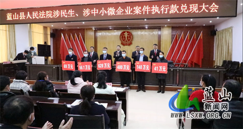 12月9日,蓝山县人民法院组织召开“湘执利剑2022”专项执行行动新闻发布会暨执行案款集中兑现大会,在省、市、县人大代表、政协委员、新闻媒体、特邀监督员及社会公众代表的见证下,现场向32名申请人集中兑付执行案款1699.3万元,全力保障了人民群众的胜诉权益得到及时兑现。