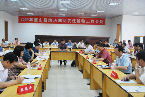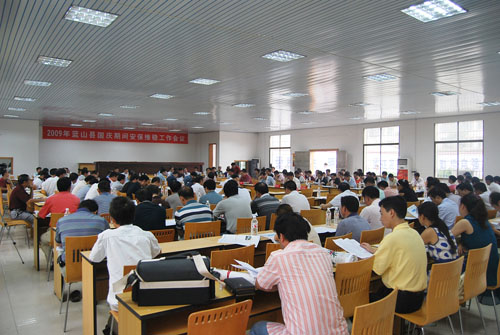 会上,县委常委、政法委书记唐小明通报了我县前段信访维稳工作,对如何做好国庆期间安保维稳工作进行了安排部署。唐小明指出:当前,我县社会大局总体稳定,但是信访维稳工作形势仍然十分严峻。各级各部门要进一步提高认识,切实抓好信访维稳工作措施的落实,做好今年第三个阶段的信访维稳工作,确保我县“县内不出事,县外不惹事”,确保新中国成立60周年庆典活动顺利举办,确保人民群众欢度国庆。