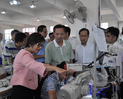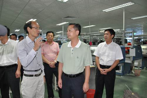 张硕辅一行首先来到最早内移我县的加工贸易外资龙头企业——丽宏针织厂。在偌大的生产车间内,200台全自动电脑机全部开足马力生产,电脑机编织产品时发出的针织声宛如一首首悦耳动听的交响乐曲。企业负责人详细向张书记介绍到:“今年,公司为缓解用工紧缺难题,顺应产业转型升级需要,公司计划投资1000万美元,购进500台全自动化电脑机,全面实施针织机械转型升级。目前,公司已经投入400万美元,全面改造横织机车间2400平方米,安装200台全自动电脑机取代手织横机,并于4月份正式投产,预计可新增产能200万件成衣,新增产值1.5亿元,减少用工900人。”听完介绍,张硕辅对企业创新发展思路,完善科技支撑,自谋发展壮大这一做法给予了高度评价。张硕辅说,企业的生存之道在于不断进行技术革新,不断顺应时代需求进行转型升级,不断向科技要生产力,蓝山的毛纺产业由劳动力密集型转型升级至数控时代的路子看得高,走得远,这一做法值得总结和推广。同时,丽宏产业升级换代项目的成功实施,加快了蓝山毛织产业的技改步伐,带动了蓝山毛织产业的“技术革命”,不愧为蓝山产业升级换代的典范。