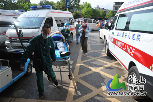 2分钟后,在尖锐的警报声中,蓝山县中心医院的急救车风驰电掣的驶出县城“120”急救中心,13分钟后,急救车到达了10公里外的急救现场。