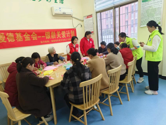 为丰富老年人晚年生活,满足老人们手工制作和参与社会活动的需求,用实际行动弘扬敬老爱老的传统美德,2024年1月10日上午,一场由蓝山县社工站和锦芊居家养老服务中心联合开展的“老有所艺、动有所乐 ”老年人手工教学活动正在南门社区二楼活动室召开。