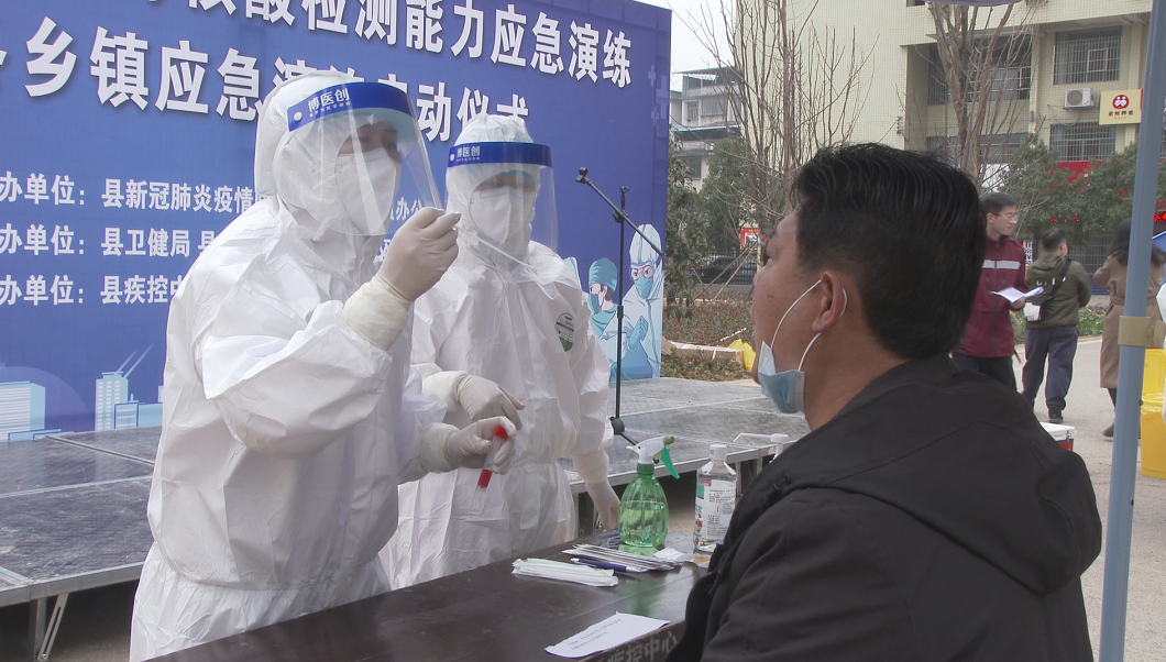 湖南日报·新湖南客户端1月23日讯(通讯员 唐海涛)1月22日上午,县新冠肺炎疫情防控办在塔峰镇龙泉社区开展城区全员新冠病毒核酸检测能力应急演练。何智英、魏秋云、许旭阳以及各乡镇,卫生院相关人员到场观摩。