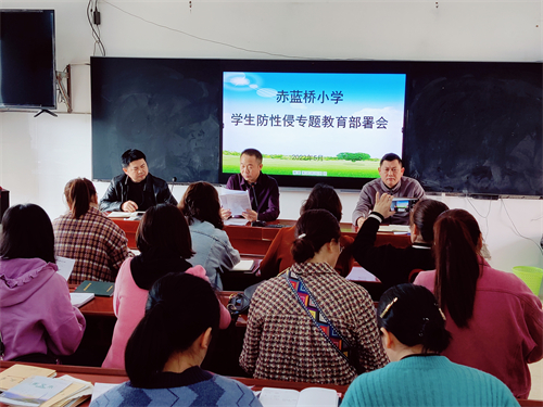 ▲为了预防学生遭遇性侵害,进一步加强学校安全教育和管理,增强师生安全防范意识。5月16日,赤蓝桥小学开展学生防性侵专题教育部署会。