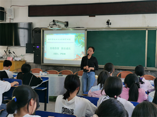 讲座开始前,主讲人以对孩子们阳光青春的赞美引入,营造轻松的氛围。然后通过案例的分析,让学生明白要学会自爱,保护好自己的隐私部位,对所有让自己感觉到不舒服的接触,要勇敢地说不;叮嘱女学生不要穿着奇装异服和过度暴露的服装,避免引起心怀不轨之人的注意,增加陷入危险的可能性;在平时的生活中,要注意细节,尽可能不单独去往可能发生性侵的偏僻黑暗环境,还要注意与人交往的分寸,提防身边的熟人,比如邻居、长辈等,他们也可能是性侵的加害者。提醒同学们要树立正确的价值观,不要被金钱和甜言蜜语诱惑,迷失了自己。要在自己最美的青春年华里,努力学习,充实自己,才能让自己的生活充满阳光。最后,主讲人还着重强调了,万一遭遇了侵犯,要勇敢地拿起法律武器去捍卫自己的权利,一定要站出来,将犯罪分子绳之以法。