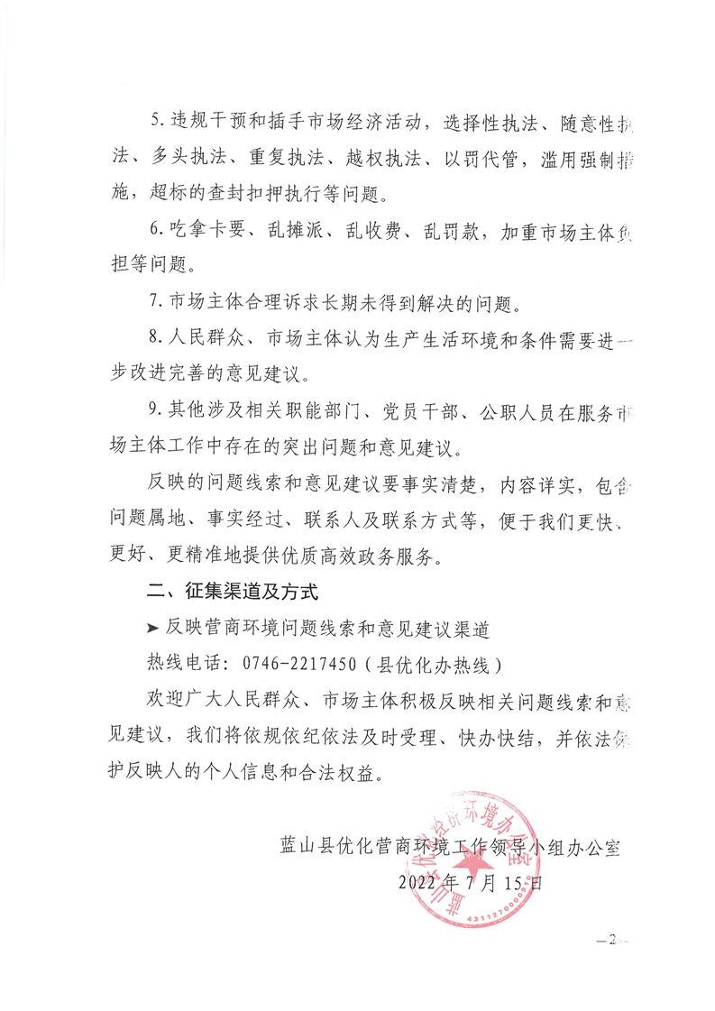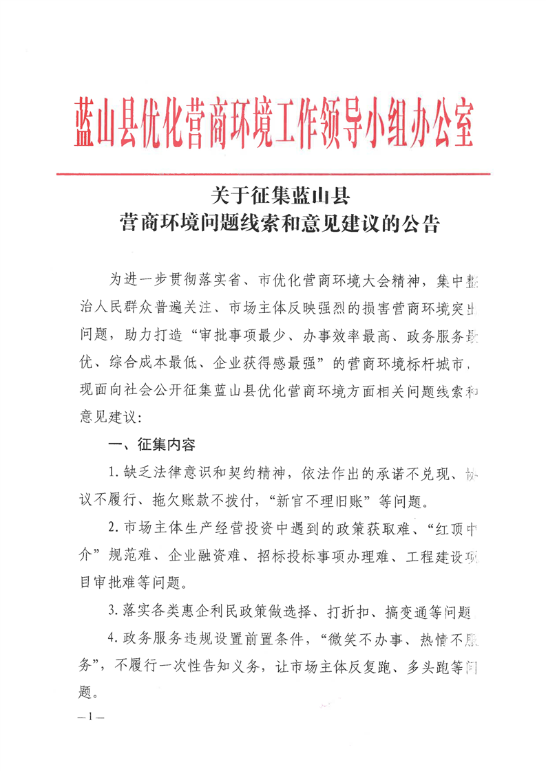 关于征集蓝山县营商环境问题线索和意见建议的公告