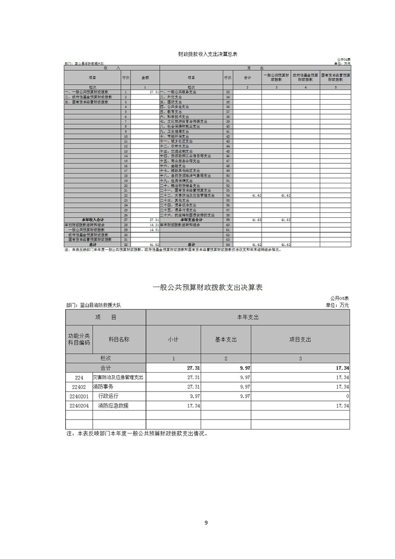 蓝山县消防救援大队2021决算公开