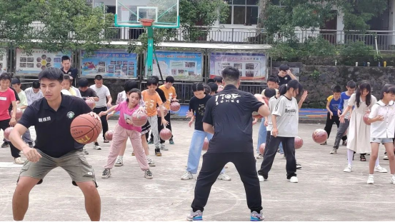 在校园操场上,专业教练员为六年级学生带来一堂生动有趣的篮球启蒙课。从基础的运球姿势到精准的传接球技巧,教练们耐心讲解、亲身示范,孩子们学得专注投入。欢声笑语随着篮球的跳跃此起彼伏。“原来篮球这么好玩!教练教的方法一学就会了!”一位高年级的男生兴奋地分享道。专业指导不仅传授了篮球技能,更在孩子们心中悄然播下了热爱运动、追求健康的种子。教学活动结束后,工作人员还为孩子们送去了篮球、文具等爱心大礼包。