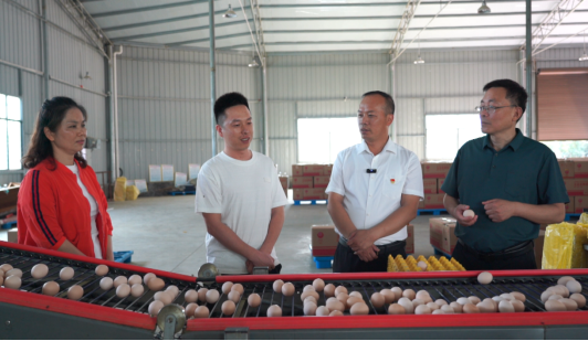 在禧勤农业发展有限公司,调研组详细了解公司市场营销情况。据负责人介绍,公司现有蛋鸡9万多羽,每天产蛋8万多枚,销往广东、广西、长沙等地,公司二期养殖场产房主体已完工,设备计划6月份入驻安装,约8月份可以入鸡养殖,规模约10万羽。