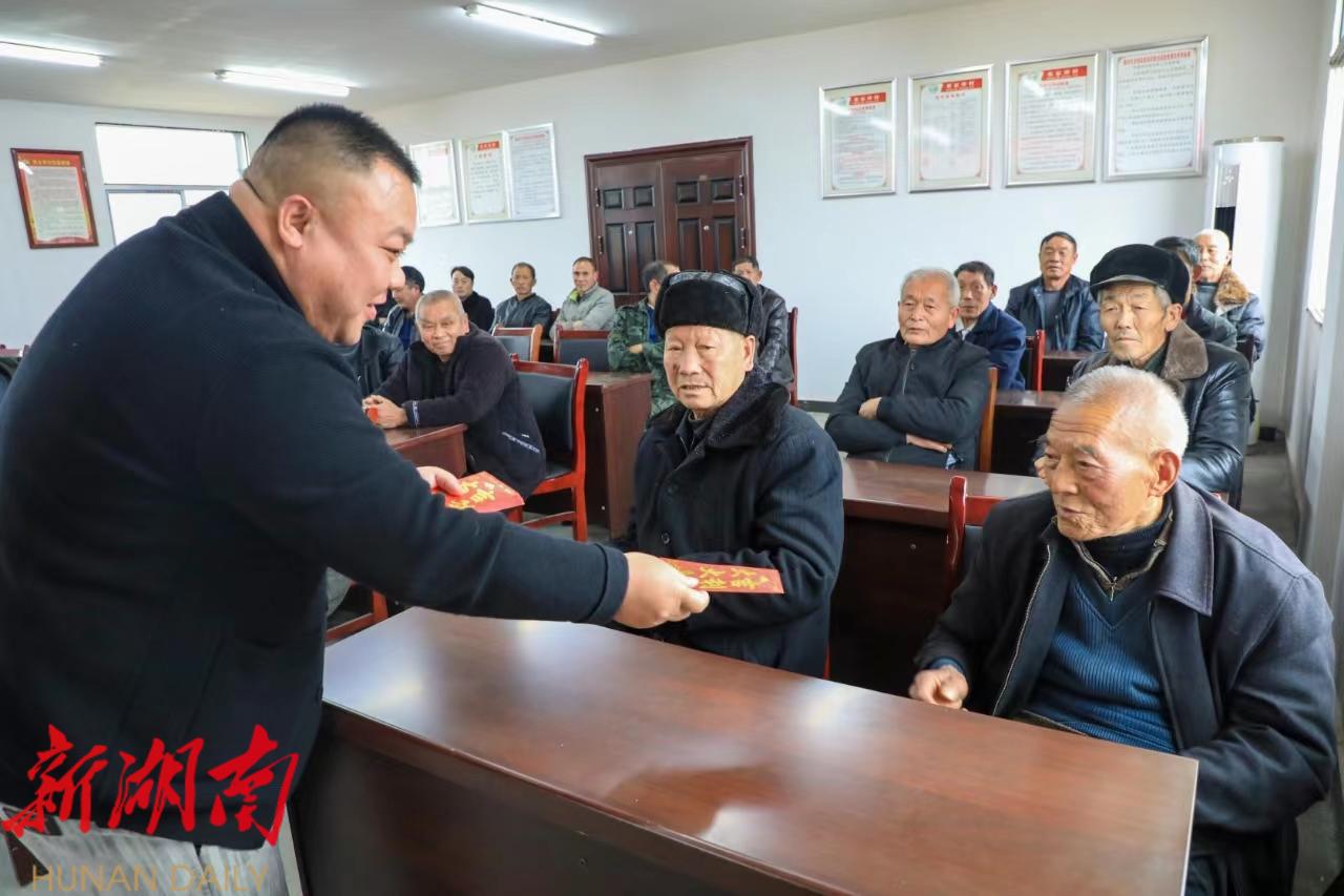 “家里有什么困难吗,这点心意请收下,你们要保重身体,健康长寿,新年快乐!”近日,在零陵区黄田铺镇邓家冲村,乡贤蒋海航在春节来临之际,为该村12位老党员送上慰问金和新年美好祝愿。