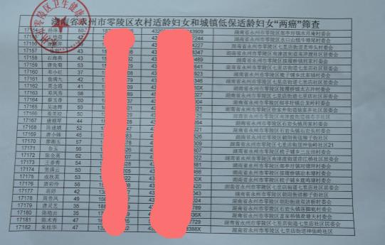 关于2019年省市重点民生实事项目“零陵区农村适龄妇女和城镇低保适龄妇女(35—64岁)‘两癌’免费检查工作完成情况”的公示
