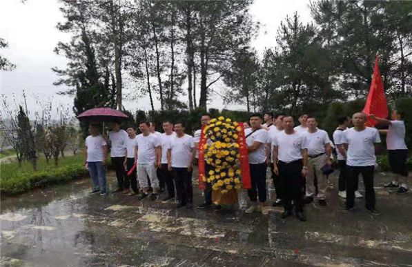 南津渡街道机关支部党员冒着绵绵细雨,沿着青松翠柏的石阶缓缓而上,大家怀着沉重的心情拜谒了陈树湘烈士的坟墓,并向陈树湘烈士墓敬献花蓝。随后,党员们来到红三十四师无名墓前,向无名烈士墓默哀,并行三鞠躬、,表达对无名革命烈士的无比敬仰之情。