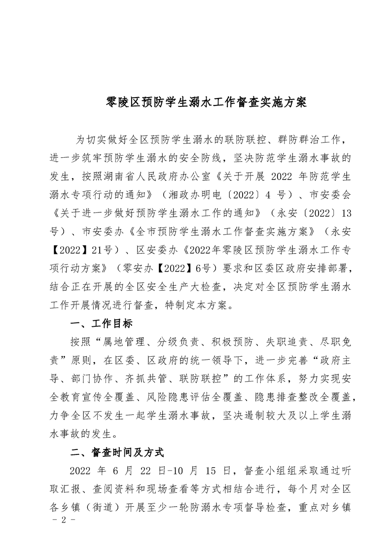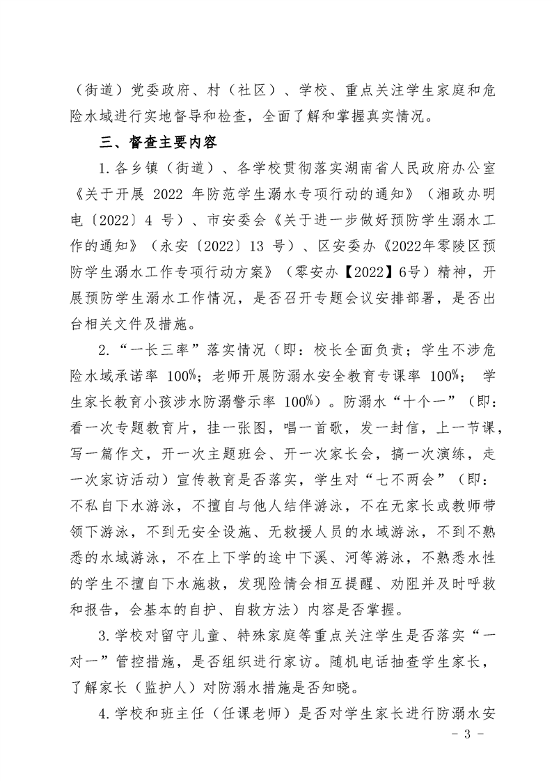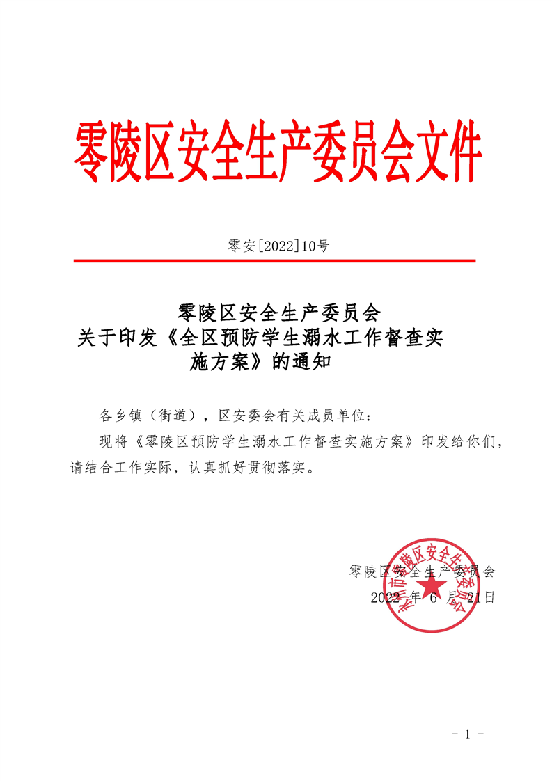 零陵区安全生产委员会关于印发《全区预防学生溺水工作督查实施方案》的通知