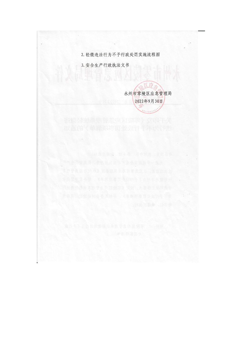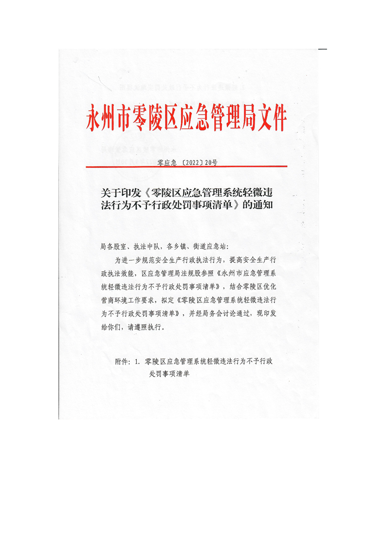 关于印发《零陵区应急管理系统轻微违法行为不予行政处罚事项清单》的通知