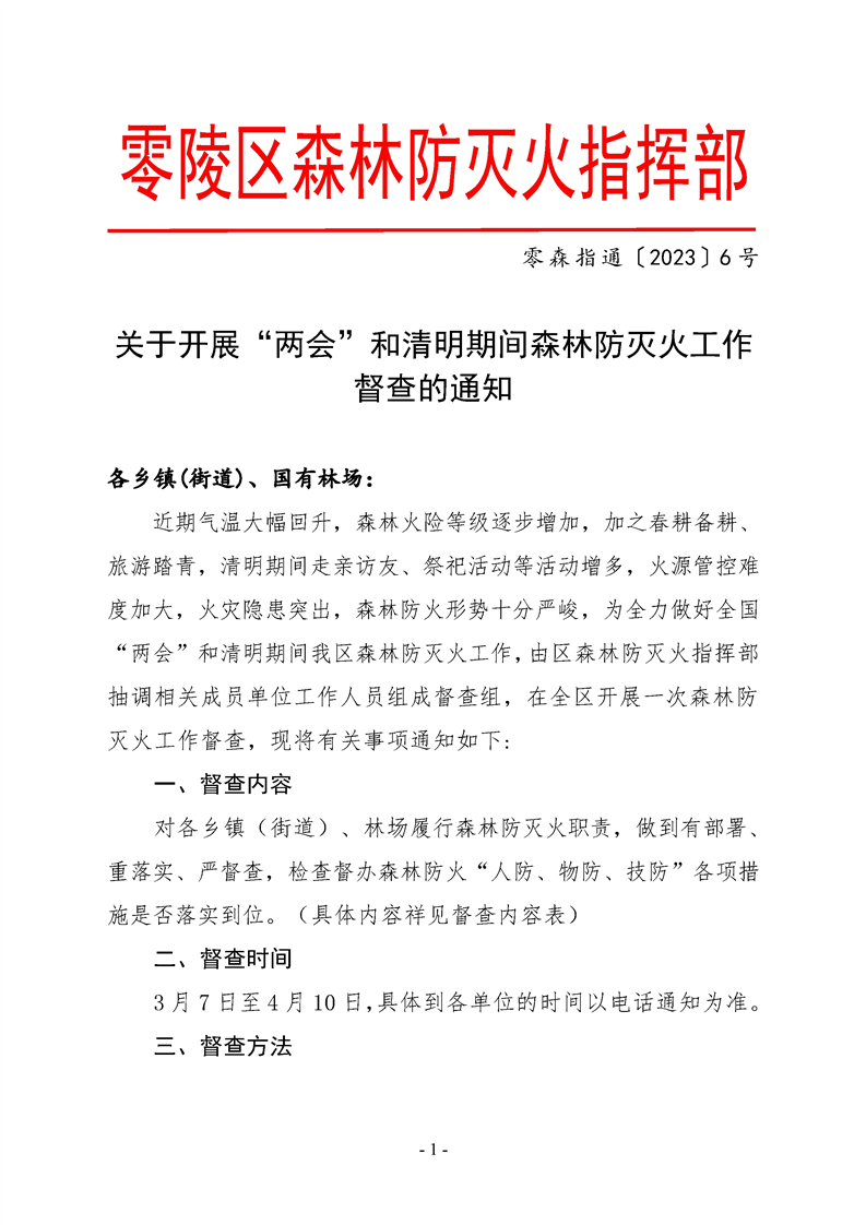 关于开展“两会”和清明期间森林防灭火工作督查的通知