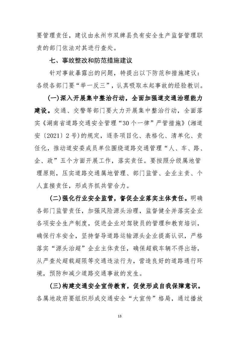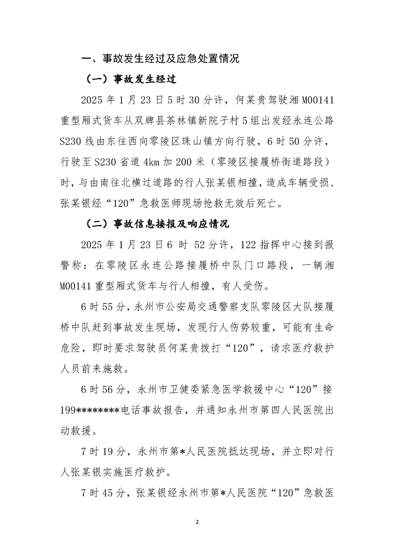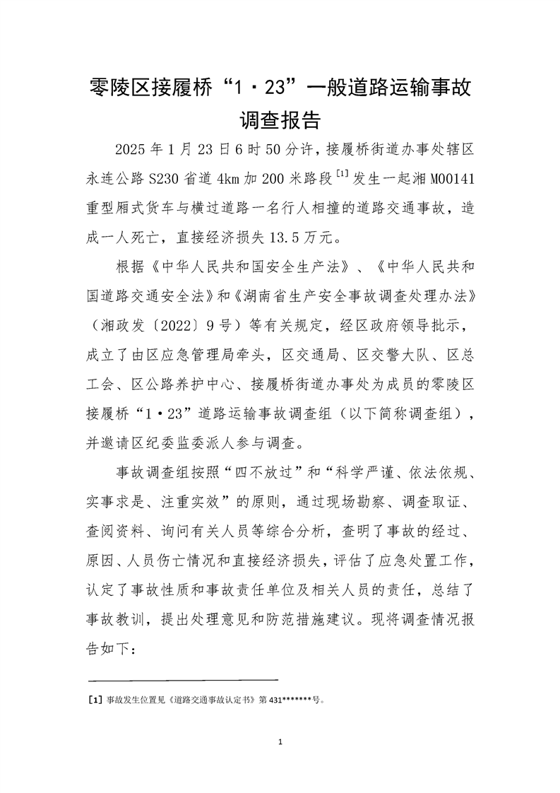 零陵区接履桥1.23道路运输事故调查报告