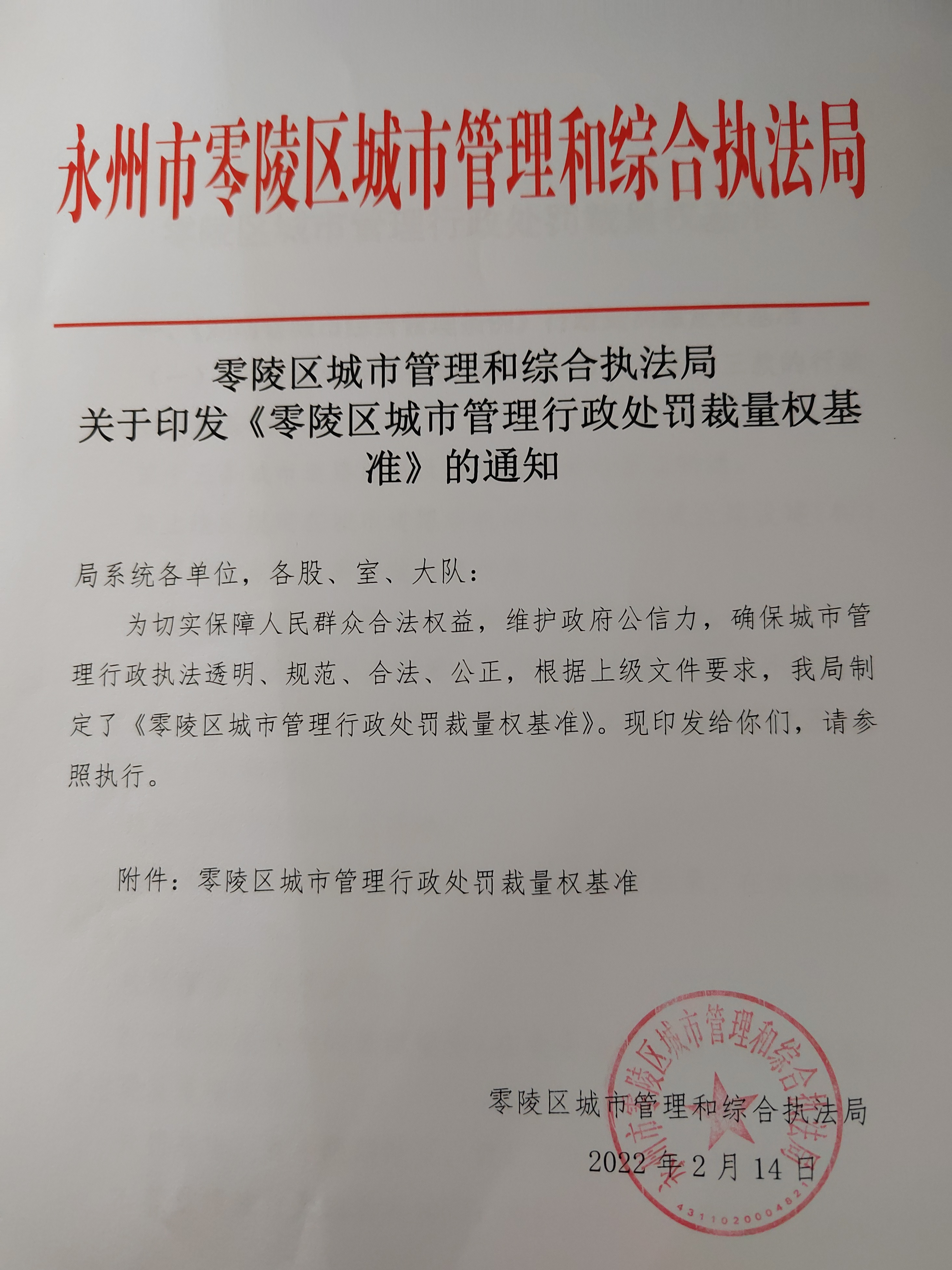 关于印发《零陵区城市管理行政处罚裁量权基准》的通知