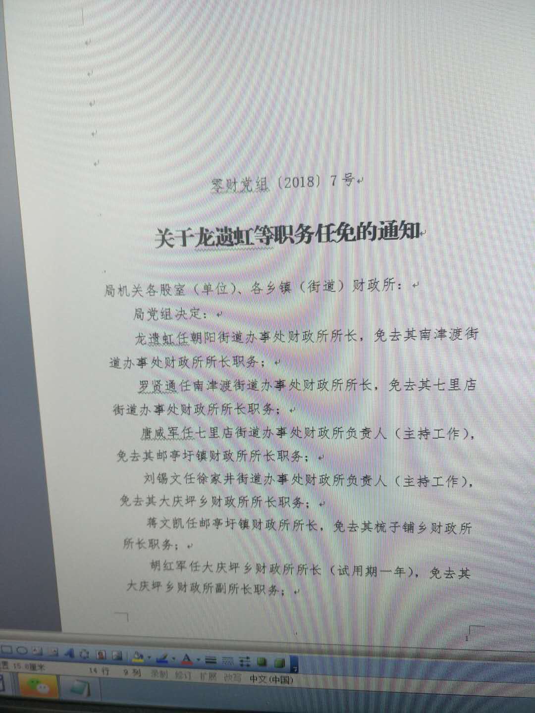 关于龙遗虹等职务任免的通知