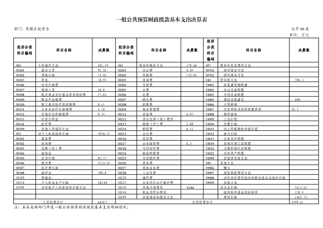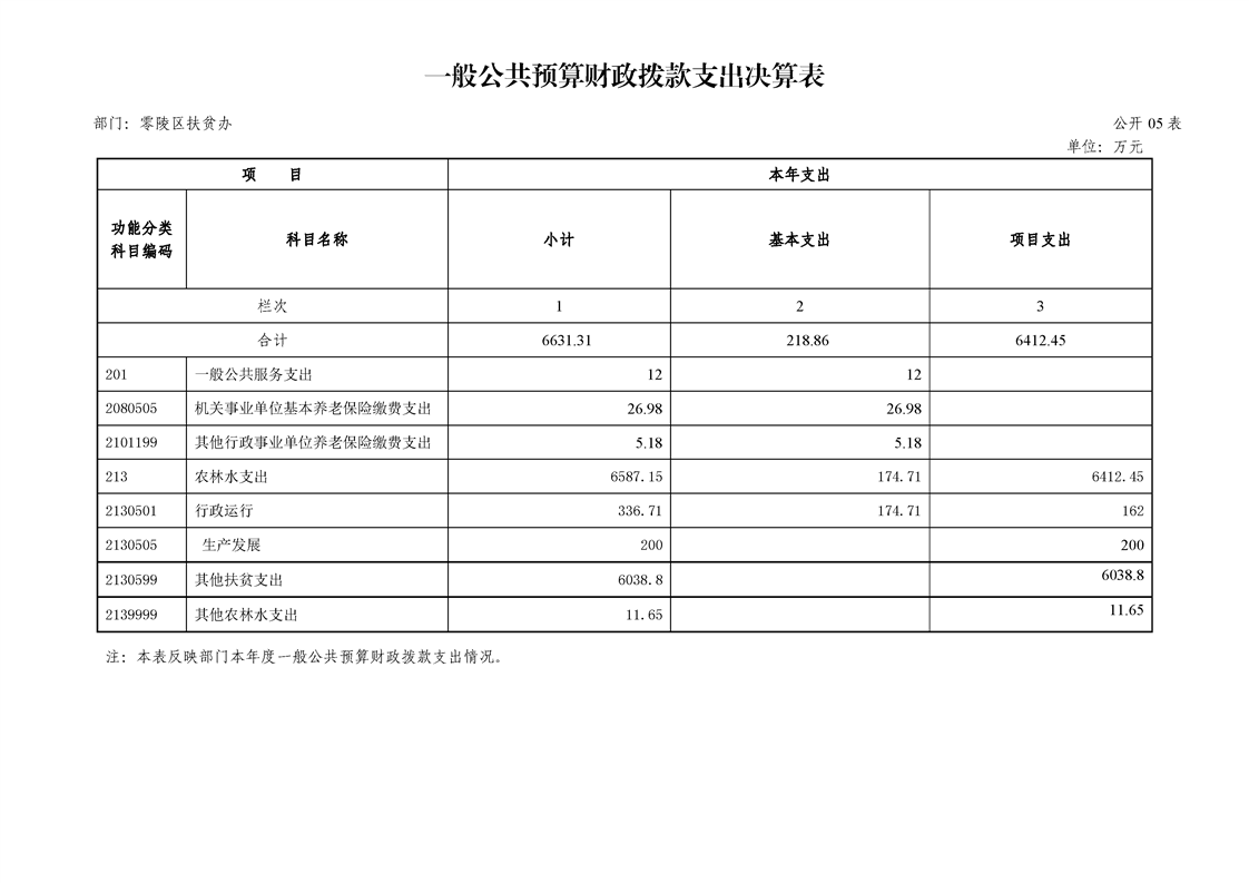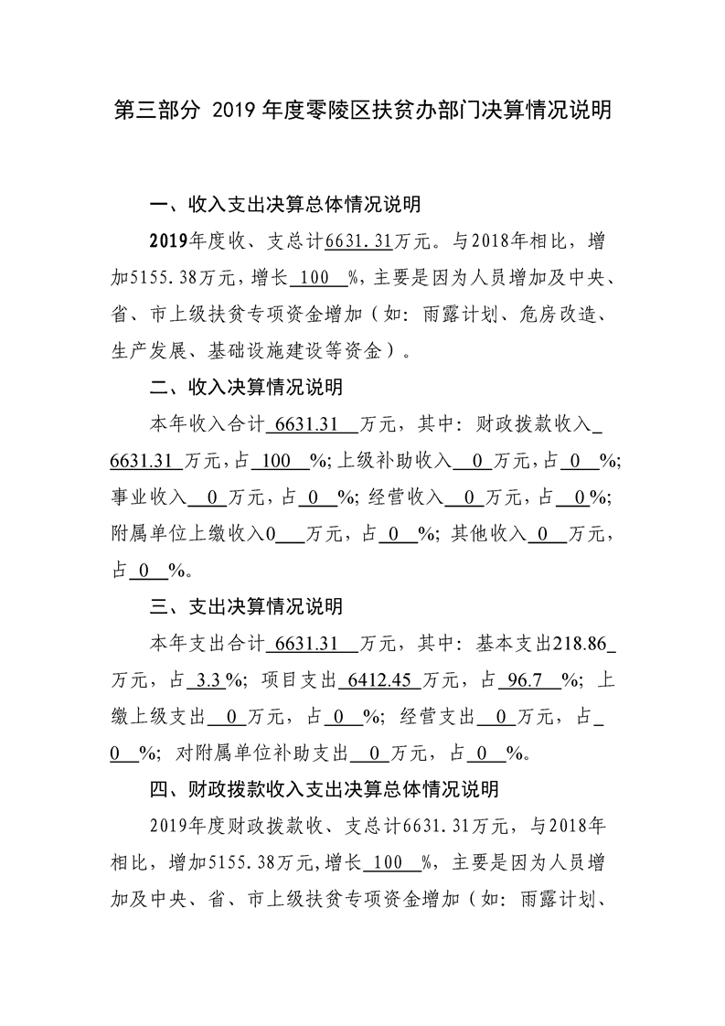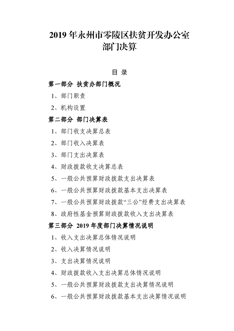零陵区扶贫开发办公室2019年度部门决算